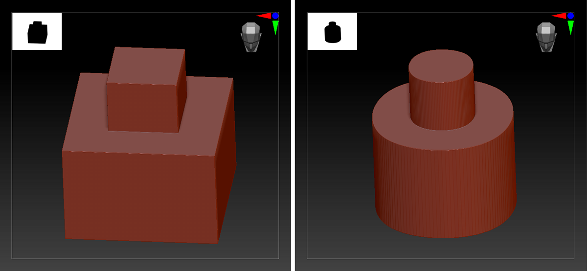 Les informations de la Propriété Inluence SDS seront automatiquement utilisées dans ZBrush pour affiner les arêtes lorsque les niveaux de subdivision sont augmentés. L'image ci-dessus montre un exemple d'objet importé de Cinema 4D avec les informations de pondération et, à droite, la forme créée par de multiples subdivisions dans ZBrush.
