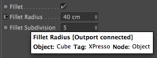 Un message d’aide sera affiché pour tous les paramètres contrôlés par XPresso qui contiennent des informations sur les propriétés, les noeuds et les ports XPresso: