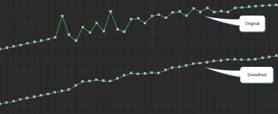 Une animation instable (en haut) peut être lissée (en bas). Cette fonctionnalité fonctionne également avec des clés qui sont très éloignées les unes des autres.