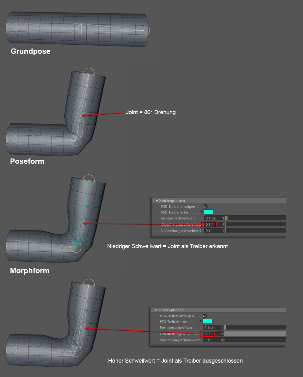 Les articulations posées différemment de leur pose de base et influencent les points pour n’importe quel morphing seront définies comme pilotes des points morphés.