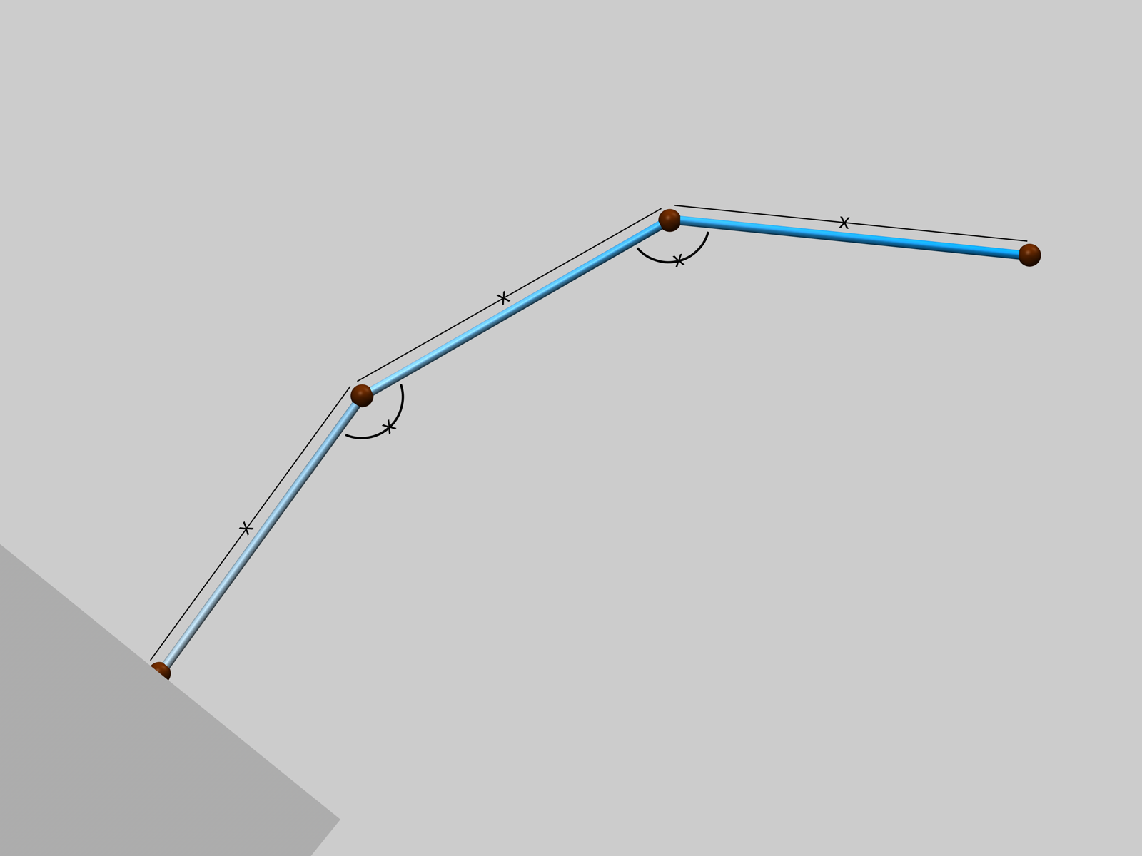 Dans l'image ci-dessus, vous pouvez voir un modèle simplifié de la transformation d'une spline en une spline dynamique à l'aide du système de simulation : il y a les contraintes de distance linéaire qui tentent de maintenir une distance constante entre les points de la spline (extensibilité), ainsi que les contraintes d'angle qui tentent de maintenir un angle constant entre les points intermédiaires de la spline (Pliure). Le terme "constant" n'est peut-être pas le plus exact puisque ces contraintes sont ajustables et rendent le mouvement possible en premier lieu.