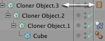 De multiple propriétés Cache MoGraph, susceptibles d’être combinées, peuvent être attribuées à des objets cloneurs (voir également Intensité).