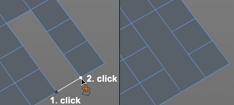 Cliquez sur une arête, relâchez la souris, cliquez sur un autre élément : crée une ligne divisée. Cette fonction ne peut pas être utilisée en mode Polygone.