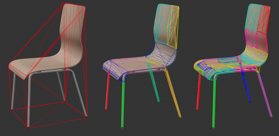 Cependant, les coques convexes avec une précision géométrique plus élevée permettent souvent de calculer des collisions tout aussi bonnes, mais beaucoup plus rapidement.