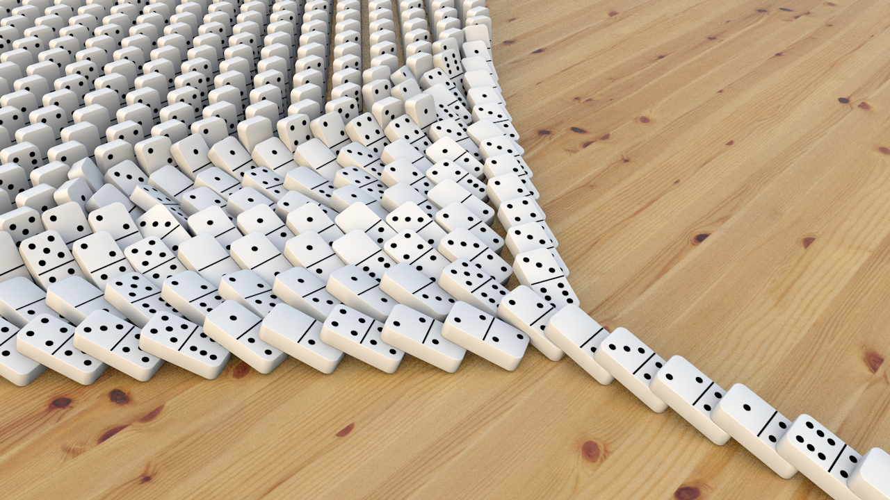 Les propriétés Corps Rigides peuvent être attribuées non seulement à des objets individuels, mais aussi à des générateurs qui mettent à disposition de nombreux objets individuels. Par exemple, les objets Cloneur ou Fracture Voronoi garantissent qu'une propriété correspondante est attribuée en interne à chaque élément. Cela vous permet de créer des installations complexes comme celle de la scène ci-dessus en un rien de temps.