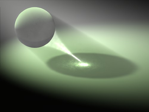 Figure 3: La queue lumineuse de la sphère est un effet caustique volumique.
