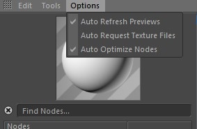 The Attribute Manager located on the far right, holds an attribute editor, for editing the parameters of nodes currently selected inside the Graph Area. The attribute editor has all the same functions as the C4D built in attribute editor, including setting key frames, takes overrides etc.