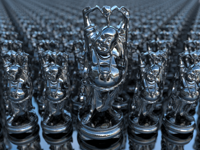 A scene with 1300 instances of a high resolution Buddha model (approximately 880,000 triangles per instance). Over a billion instanced triangles.