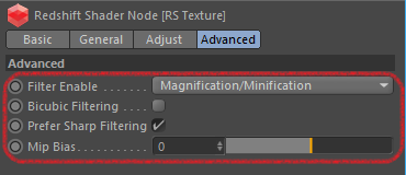 The Redshift Texture Options give you better control over texture filtering and MIP-mapping on a per-texture basis.