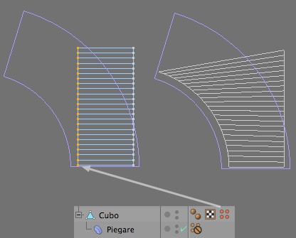 Il tag Punto Selezione del cubo, assieme al Tag Restrizione, limita i punti del cubo che possono essere spostati.
