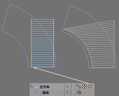 このタグをデフォーマに適用すると、その働きを、ポリゴンオブジェクトに指定した選択範囲タグや頂点ウエイトタグだけに制限できます。一つのデフォーマには12個の選択範囲タグを指定でき、それぞれに強度を指定できます。詳細については、デフォーマや、選択範囲を記録を参照して下さい。