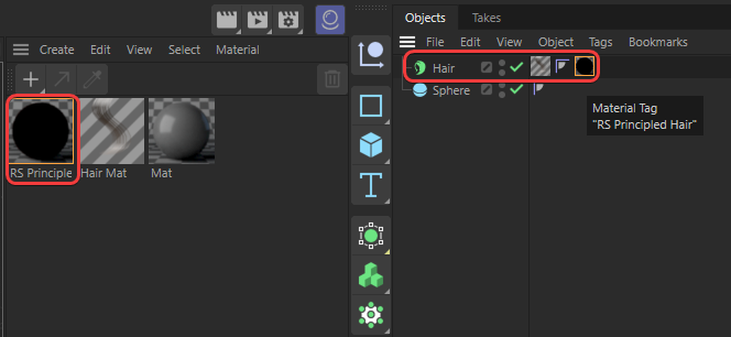 Create a Principled Hair shader and apply it to your C4D hair object without replacing the default C4D hair material, this will still be used to control hair attributes like frizz, clump, and curl. For more information regarding these attributes please see the C4D Hair Material page.