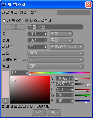 새 텍스쳐 선택 시 다음과 같은 창이 열립니다: