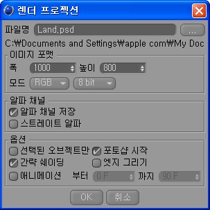프로젝션 렌더링 (파일) 커맨드를 호출하면 다음의 다이얼로그가 열립니다.