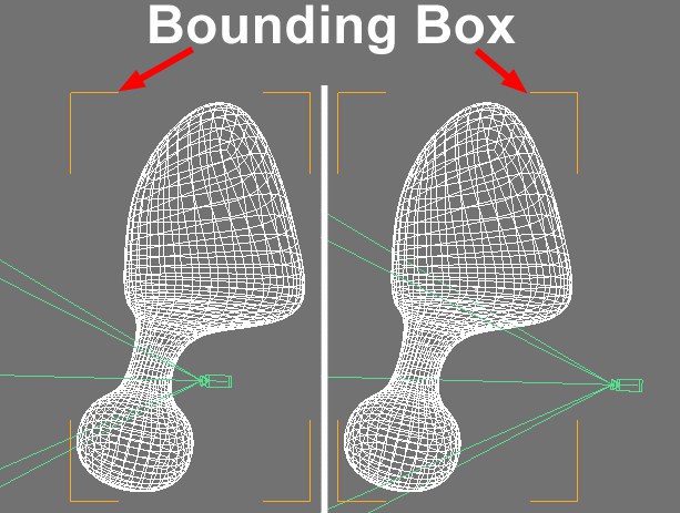 Use Bounding Box For Collision Detection disabled (left) and enabled (right).Collision detection can be based either on an object’s original geometry (option disabled) or on a bounding box (option enabled). A bounding box is a cube that represents the outer dimensions (height, width, length) of a given object.