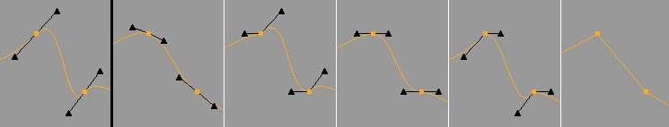 Hiermit wird die linke Tangente auf dieselbe Gerade gesetzt, die durch die rechte Tangente gebildet wird (nur liegt der Tangentenendpunkt gegenüber dem der anderen Tangente), ihre Länge bleibt dabei konstant.