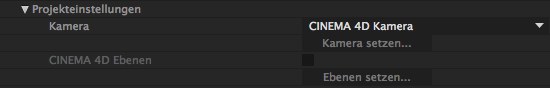 Hier kann gewählt werden, ob eine der vorhandenen Cinema 4D Kameras zur Berechnung genutzt oder eine After Effects Kamera verwendet werden soll.