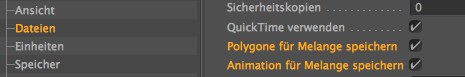 Um Probleme beim Importieren von Cinema 4D Szenen in After Effects zu vermeiden, sollten in den Cinema 4D Programmvoreinstellungen die Optionen Polygon-Cache speichern und Animations-Cache speichern aktiviert sein.