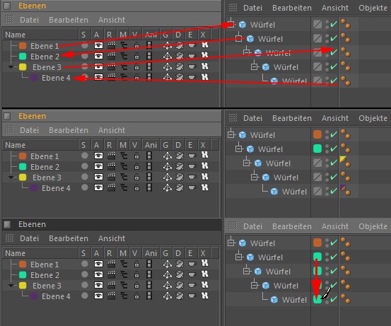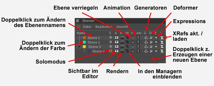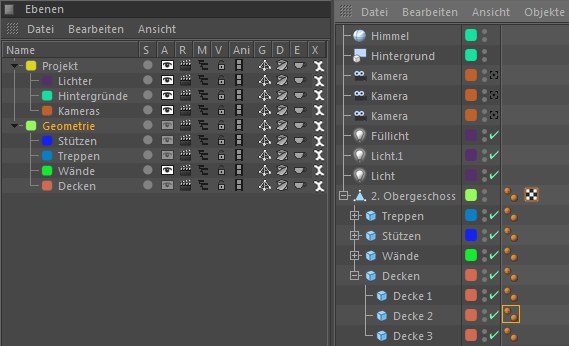Was sind Ebenen? Eigentlich nichts weiter als Gruppierungen von Szeneelementen mit denen gemeinsam etwas angestellt wird.