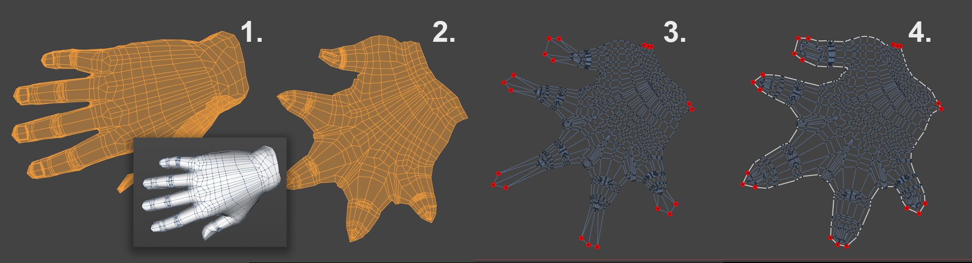 in 2. abgebildet. Obwohl sich jetzt keine UV-Polygone mehr überlappen, sind die Bereiche der Fingerspitzen