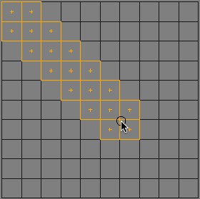 Es werden alle Polygone, die mit diesem Werkzeug in Berührung kommen selektiert.