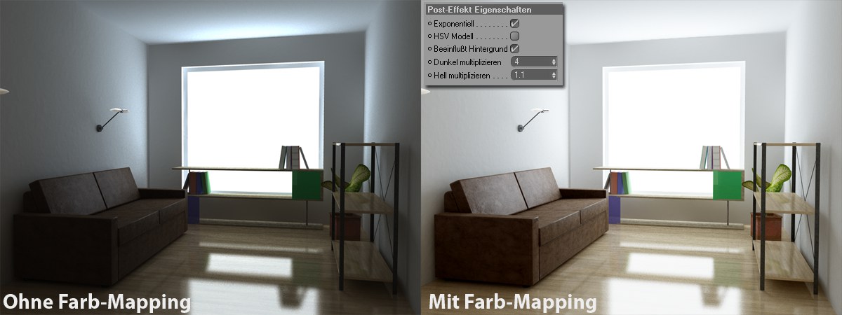 Beide Methoden machen prinzipiell Ähnliches. Sie nehmen die vom Renderer angelieferten bzgl. Farbumfang sehr großen Bilder und interpretieren diese auf unterschiedliche Weise zu gängigen 8-Bit-Bildern.