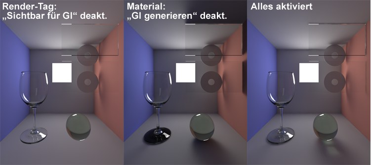 Normalerweise ist es so, dass Glas aufgrund seiner Transparenz selbst wenig sichtbar von der GI beleuchtet wird und daher einiges an unnötiger Rechenzeit verbraten wird.