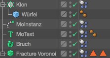 Angenommen, Sie haben mit dem Klon-Objekt eine solche Szene erstellt: