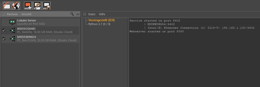 schon gestarteten Render-Clients – der hier gelistete "Lokale Server" ist kein Render-Client – ein (s.a.