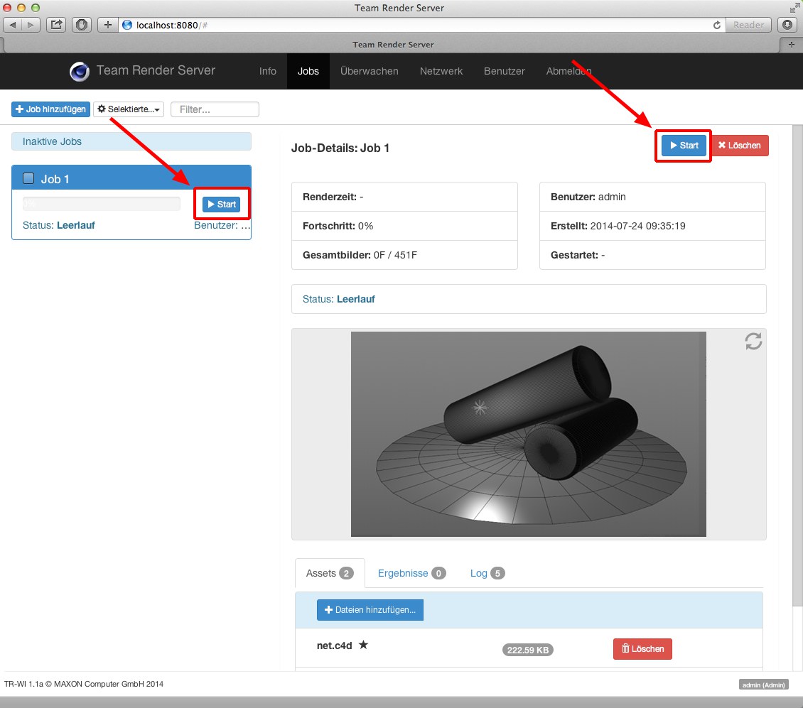Das Starten des Rendervorganges erfolgt dann über das Webinterface, das Sie mit dem nächsten, beschriebenen