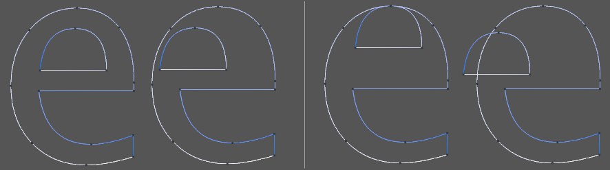 Das Wort besteht zunächst aus vier Buchstaben; das macht vier separate Segmente. Allerdings kommt noch ein fünftes hinzu. Das Innere des e nämlich ist ein weiteres Spline-Segment. Wird ein solches Element z.B. später in die Tiefe zu einem 3D-Objekt gezogen, erkennt Cinema 4D automatisch, dass es aus dem e ein Loch in Größe und Form des inneren Segments ausstanzen muss.