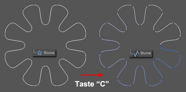 Um nun z.B. die Stützpunkte eines Spline-Grundobjektes z.B. mit dem Spline-Stift zu verformen, muss es erst mit dem Befehl Grundobjekt konvertieren (oder einfach mit dem Tastaturkürzel