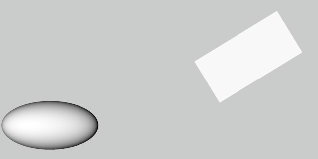 Nun aktivieren wir den Objektmodus (wie man es eigentlich nicht machen sollte; richtig wäre der Modellmodus) und skalieren über den Koordinaten-Manager die Kugel nur in X-Richtung auf z.B. 2/1/1. Wie zu erwarten, werden Kugel und Würfel verzerrt.