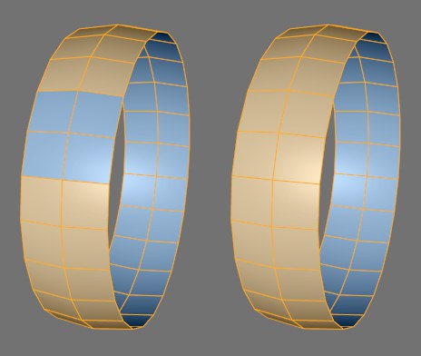 Benutzernormalen: Weist ein Objekt ein Normalen-Tag mit darin gespeicherten Vertex-Normalen auf, entscheidet diese Option, ob die Vertex-Normalen auszurichtender Polygone ebenfalls umgedreht werden, oder exakt wie im Tag gespeichert, verbleiben.