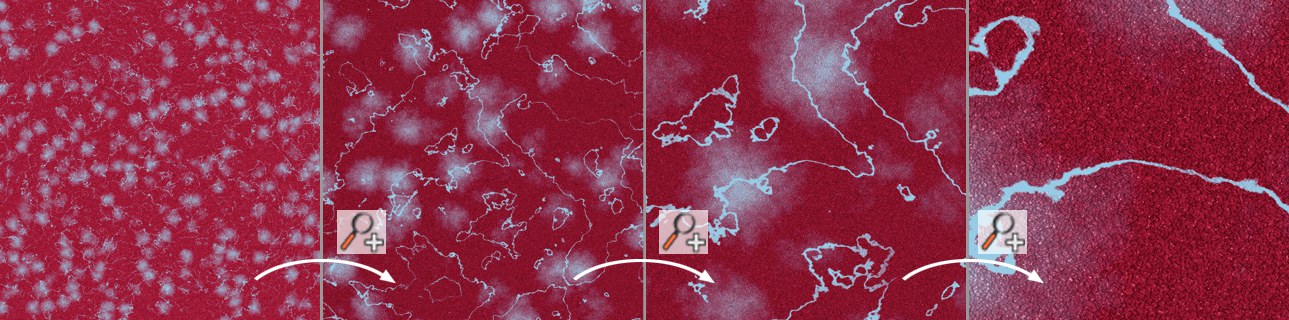 Shader sind mathematisch berechnete Texturen, die zwei- oder dreidimensional sein können. Der Vorteil der Shader ist, dass sie immer so groß sind wie gerade erforderlich. Das bedeutet, dass Sie an einen Shader unendlich nahe heranzoomen können, ohne jemals ein Pixel zu sehen.