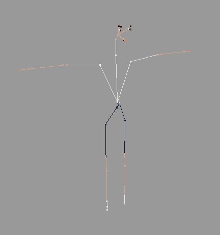 Bei der Skelett-Darstellung wird die Objekthierarchie angezeigt. Hierbei werden lediglich die Ursprünge der Objekt-Achsen gezeichnet und durch Linien gemäß der Hierarchie miteinander verbunden. Die Skelett-Darstellung eignet sich vor allem für die Charakteranimation, da alle hierbei störenden Linien nicht gezeichnet werden.