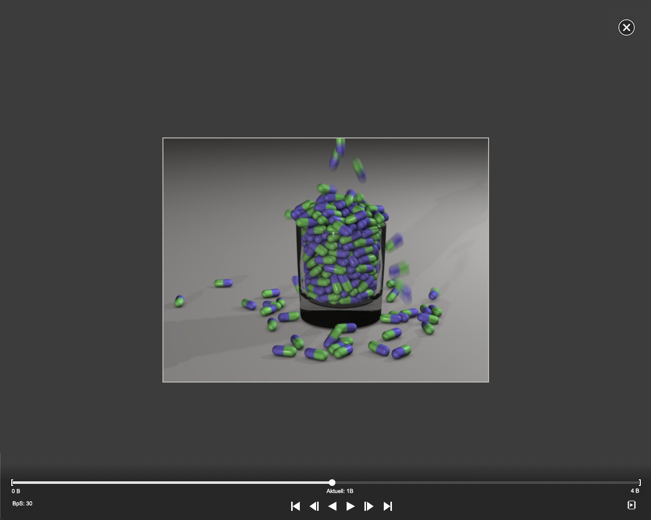 Bei Animationen wird unten ein Bedienfeld mit den gängigen und bekannten Buttons eingeblendet, dass sich nach einiger Zeit ausblendet. Eine Mausbewegung lässt es dann wieder erscheinen. (Drücken der Leertaste startet bzw. stoppt die Animation).