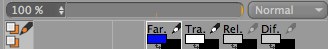 Sie definieren hier außerdem, in welchen Material-Kanälen das aktive Werkzeug arbeiten soll. So verschiebt beispielsweise das Ebene-Verschieben-Werkzeug auch nur in den Ebenen, die hier mit dem Bleistift-Icon ausgewählt sind.