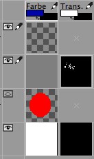 Mit dem linken Icon (schwarzer gefüllter Kreis) können Sie den Alpha-Kanal an- und ausschalten. Ist er aktiviert, werden alle schwarzen Bereiche ausgeschnitten, weiße Bereich bleiben sichtbar. Natürlich funktioniert dies auch mit allen dazwischenliegenden Graustufen (mehr oder weniger transparent).