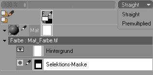 Bei der Berechnung eines Bildes mit Alpha-Kanal werden sowohl Bitmap als auch Alpha-Kanal mit einem Antialiasing versehen. Wenn Sie diese Bitmap samt Alpha-Kanal in BodyPaint 3D einladen, wird im Modus Straight Bitmap und Alpha-Kanal multipliziert. Die Folge: Der Verlauf von Objektfarbe zu Hintergrundfarbe wird doppelt berechnet, was zu unschönen Kanten führen kann. Der Modus Premultiplied verhindert dies.