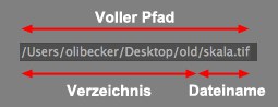 Mit den weiter unten beschriebenen Befehlen können beide Pfadtypen in den jeweils anderen umgewandelt werden.