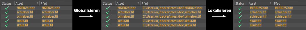 Alle folgenden Befehle beziehen sich immer nur auf die Asset-Pfade innerhalb Cinema 4D. An den Asset-Dateien selbst wird nichts geändert.