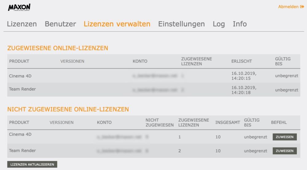 Der Maxon License Server wurde an das neue Maxon-Lizenzierungssysten (s.