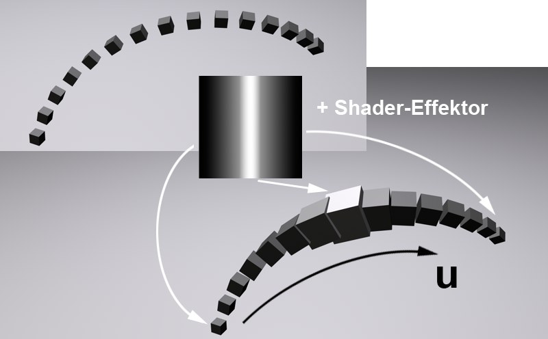 Diese UVW-Koordinaten haben nichts mit dem Texturieren von Klonen zu tun, sondern dienen ausschließlich den Effektoren, jedem Klon einen Wert zuzuordnen, aufgrund dessen alle möglichen Transformationen vorgenommen werden können.