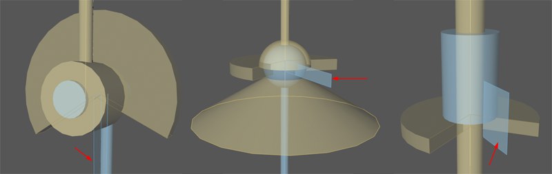 Diese Option gilt nur für Kollisionen zwischen den beiden vom Konnektor verbundenen Objekte. Oft während des Aufbaus einer Szene, wenn Sie prinzipielle Konnektor-Konstruktionen ausprobieren, wäre es störend, Kollisionsabfragen wirken zu lassen.