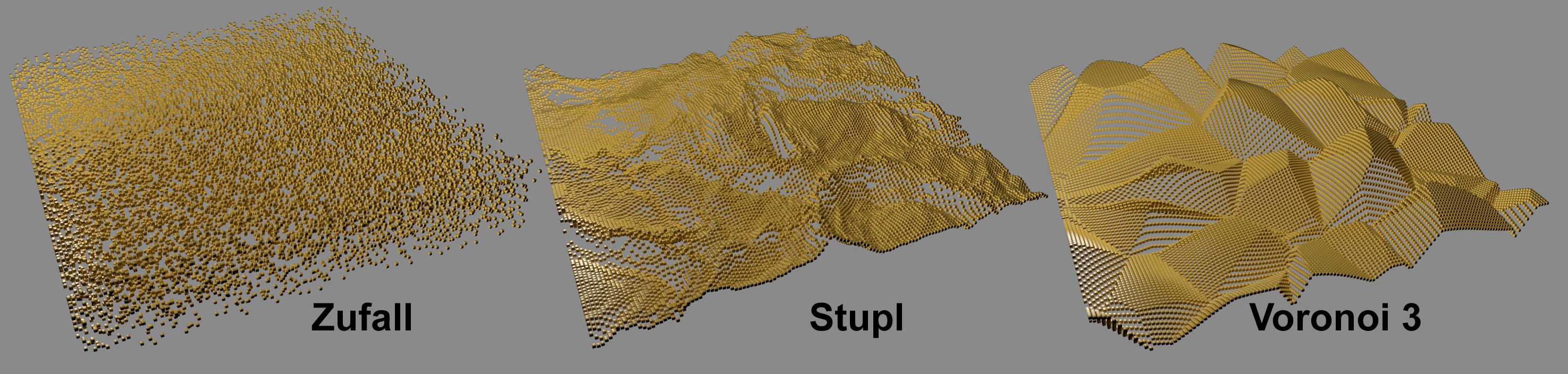 Hiermit lösen Sie das Noise-typische Muster auf, was sich oft bei großskalierten Noises ergibt. Jedes Sample erhält seinen eigenen (internen) Startwert, d.h. selbst sehr dicht nebeneinander liegende Samples sind unabhängig vom benachbarten. Trotzdem verhält sich jedes Sample für sich bzgl. Animation gemäß seines Noise.