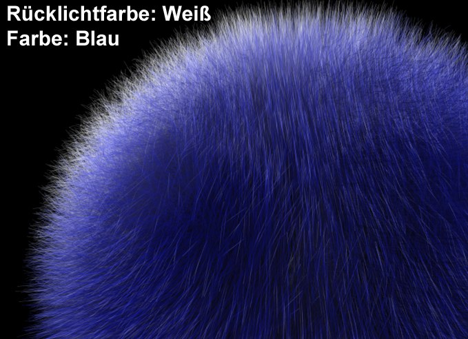 Es ist also möglich, von hinten beleuchteten Haaren eine völlig andere Färbung zu verleihen als von vorne beleuchteten.