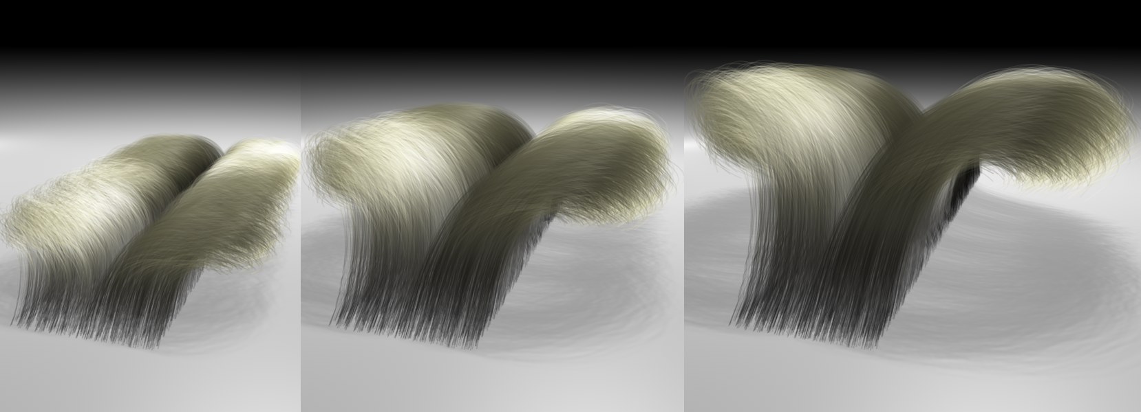 Haar-MaterialBasisFarbeRücklicht FarbeGlanzlichtTransparenzDickeLängeGrößeKräuselnKnickenDichteBüschelSpannungDisplacementBiegenLockenVerdrehenWellenGlättenIlluminationZuweisen