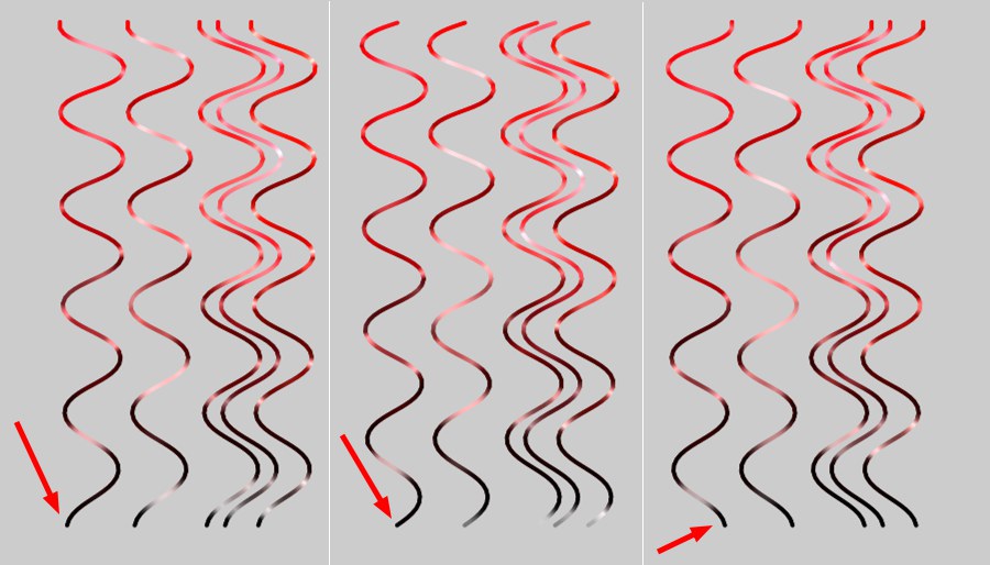 Die Phase, die getrennt für den X- und Y-Anteil der Schwingung festgelegt werden kann, definiert den Startzustand der Welle. Dies kann man am besten in obiger Abbildung an den Haarwurzeln erkennen.