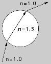 Sobald ein Strahl auf eine Oberfläche mit Transparenz und Brechung trifft, wird der Strahl beim Durchgang durch die Fläche geschwächt und abgelenkt. Der Strahl befindet sich nun im Objekt und läuft solange weiter, bis er erneut auf eine Fläche des Objekts – diesmal auf der Austrittsseite – trifft. Dort wird er wieder abgelenkt – ganz so, wie man es von einem brechenden Objekt, z.B. einer Glaskugel, erwartet.
